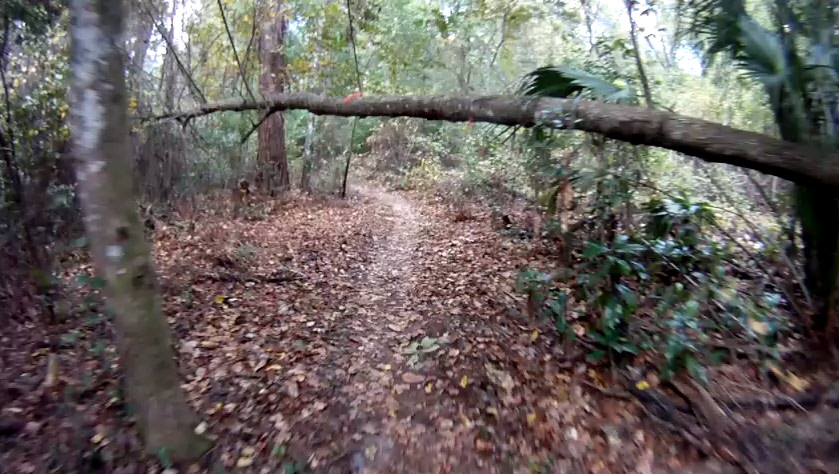 We stormed to the trail head, got our punch card and bolted into the trails. It was a surprise to see that the technical trail was that of a BMXer's dream (for a FL adventure race). There was plenty of dips, curves, bowls, lips, bridges, trees and accidents waiting to happen. The instructions were to ride the entire trail in the proper order (upper half of blue->red->yellow->lower half of blue), while collecting obviously placed CPs (obvious because of how important it was to using your immediately sight, or else you fell off cliffs).